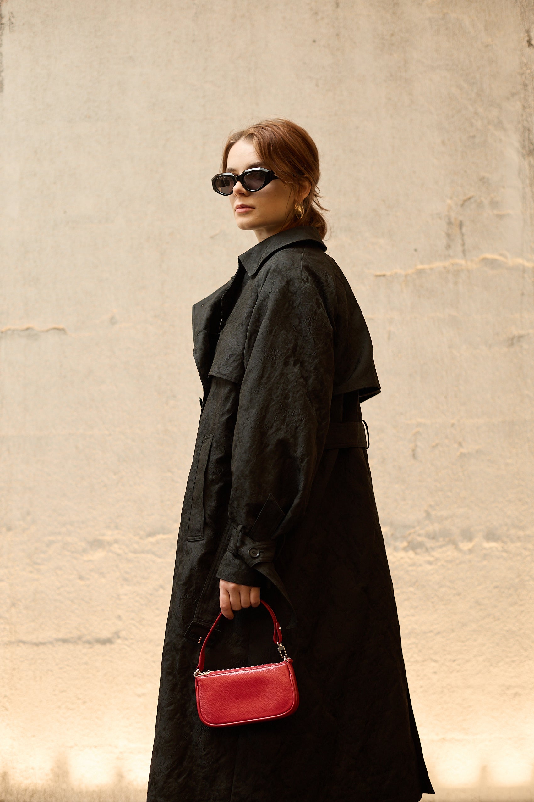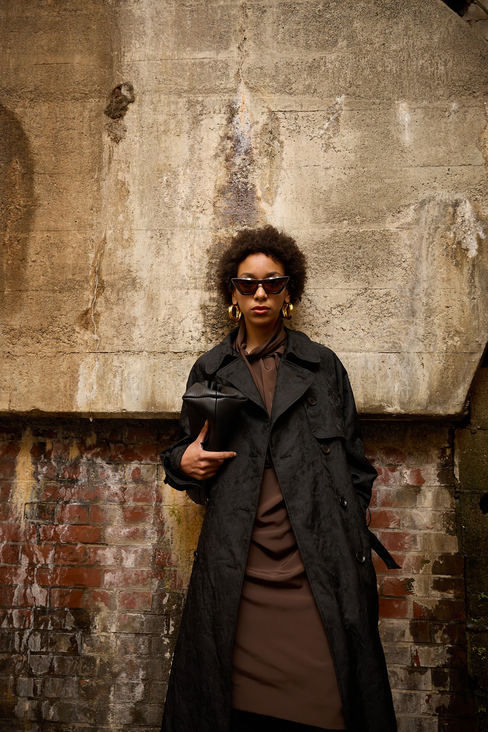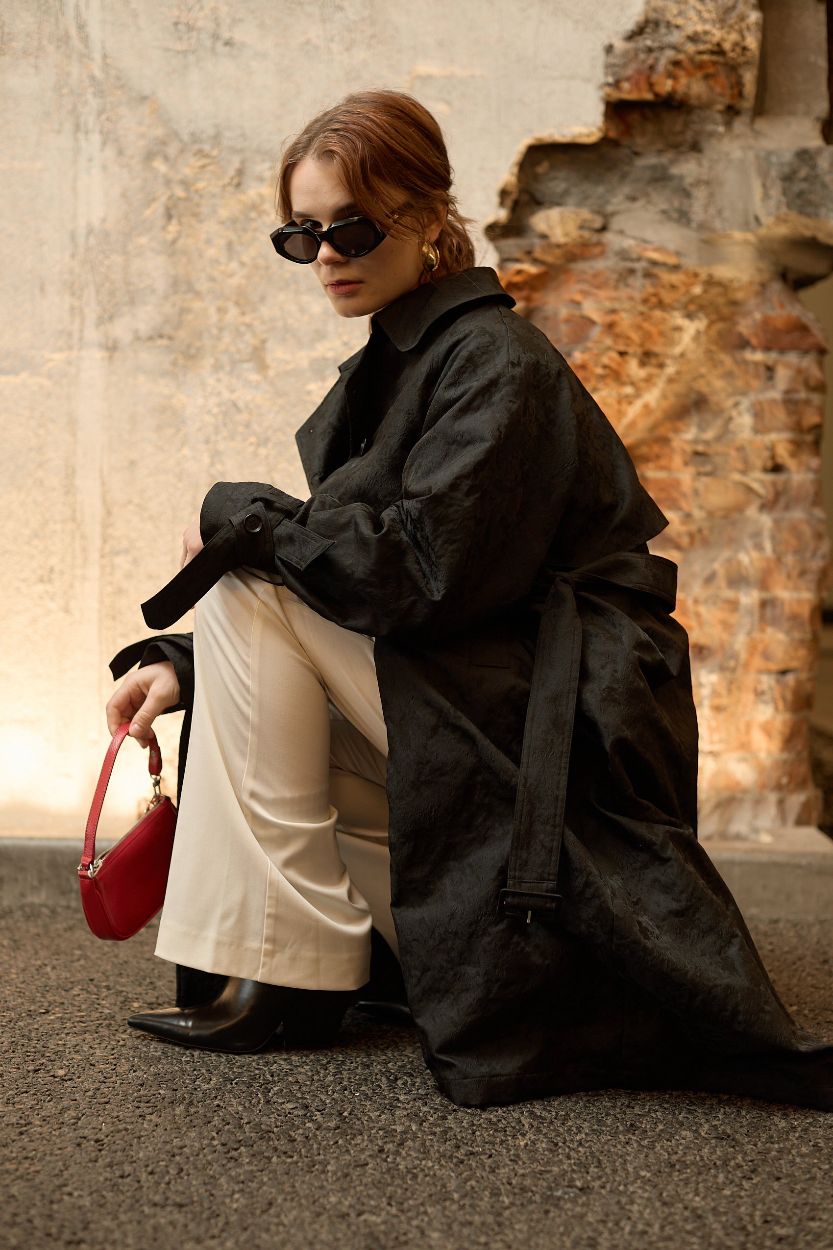 - Model Wears Size S/M. *Garment measurements: Half Chest 59cm(23 1/4") / Body length at Center Back: 113 cm (44 1/2")