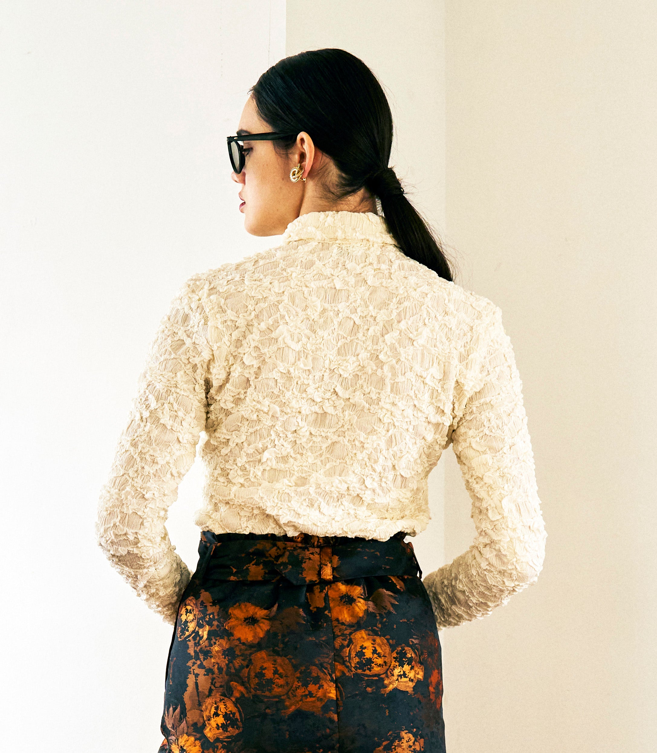 - エレガントでありながら汎用性が高く、テーラードスカートやパンツとの組み合わせに最適です。