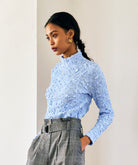 Pair this mock neck top with our Katia Hakama Pant for a modern edge, the Glen Plaid Paperbag Pant for tailored chic, or the Floral Jacquard Skirt for a feminine statement.Each piece creates a distinctive yet refined look.