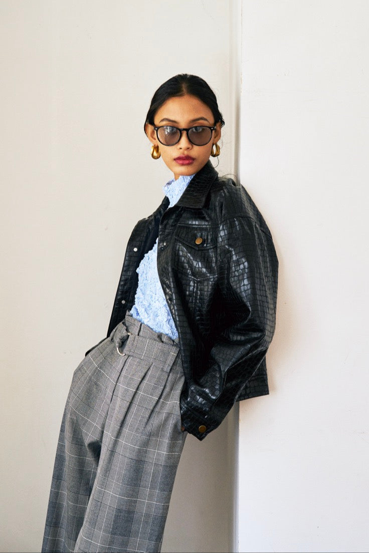 Classic jacket cut crafted from faux crocodile leather. Pair with various bottom options. Relaxed Fit - One size fits various sizes : Fits from US 4 (EU 36) to US 8 (EU 40)